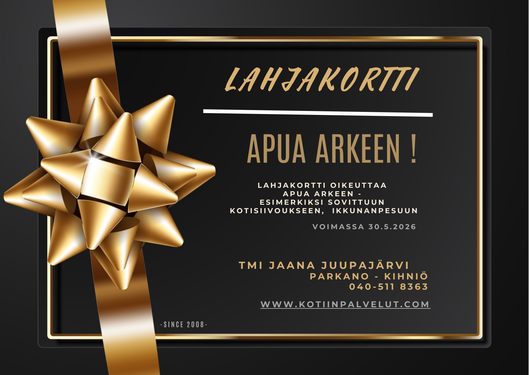 Soita ja sovitaan aihe + tuntimäärä esimerkiksi kotisiivous tai ikkunanpesu.